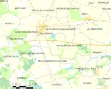 Parmi les plus importants : Les Arlots, Arrivet, la Baraudière, Bel-Air, la Benoisetière, le Bois Neuf, le Bourg, la Bretonnerie, le Champ de l’Église, le Champ de la Herse, le Champ de la Motte, le Champ Grivot, la Charentonnerie, les Charentons, la Couté, la Franchie, les Frédevilles, la Fromagère, les Galarnières, la Garenne de l’Aulnaie, la Gibardière, Gomoru, la Graissière, les Greniers, Gueulechère, le Liard, les Minées, la Montagne, Montlevreau, la Morrine, la Nigonnerie, la Paucordière, les Queues Levées, la Rouaillerie, les Ramonds, les Sablons, la Sauvagère, Sevry (à cheval sur la commune d’Ouzouer-sous-Bellegarde), les Vollaines[8].