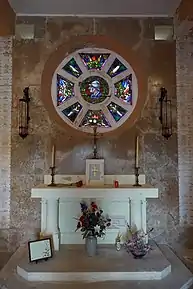 Au centre de la pyramide, se trouve une chapelle avec des plaques déposées par les familles. La rosace centrale est en forme de croix de guerre. Un deuxième niveau, plus bas fait le tour de la chapelle d'entrée qui est autant un lieu d'exposition, de caveau pour les deux généraux qui y reposent et un lieu de mémoire avec les plaques pour des unités et les trois enfants du président.