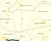 Les hameaux : le Vau, Chauffour - ou Chaufour, la Gare d'Auxy - laquelle tire son nom d'une gare aujourd'hui désaffectée, Gondreville, Bourgneuf, Montatelon. Les écarts : les Caves, Lavau et Beauregard.