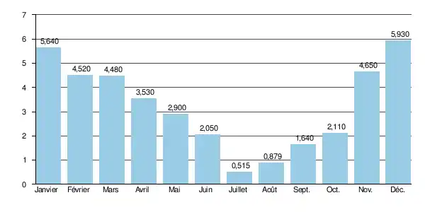 Sur cette période, le débit journalier maximal enregistré a été de 56 m3/s le 25 décembre 1968.
