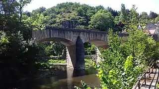 En avant du pont du faubourg de Cousin-le-Pont, s’élance d’une rive à l’autre la belle arche construite pour le passage des tuyaux des fontaines remontant au niveau de la ville après être descendus d’un plateau un peu plus élevé. C’est à l’extrémité de ce plateau que s’élève la belle maison des Alleux, placée au sommet de magnifiques escarpements de roches (…) Le camp des Alleux se trouve tout à fait en dehors de notre panorama et ainsi l’étroite et tortueuse vallée du Cousin est oubliée. La vallée n’est belle que vue de la ville, et la ville n’est réellement belle que vue de la vallée[3] »