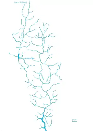 - Le ruisseau de Pont ar Bastard, 4,8 km, rive droite, qui provient de Tourc'h.
