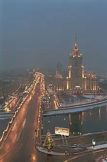 Avenue Koutouzov la nuit (à droite l'hôtel Ukraine).