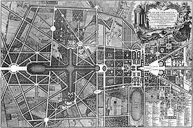 L'avenue de Paris, prise depuis le pavillon Dufour du château de Versailles. | ||