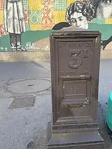 Exploitée depuis 1920, cette salle était précédemment dénommée « Gaumont Sud », antérieurement « Théâtre des Gobelins », plus anciennement « Orléans Palace » et initialement « Montrouge Palace » (1920)[17] - En face du no 73 : borne kilométrique en fonte indiquant « N 20 3,5 km de Notre-Dame », fac-similé de l'original qui avait été détérioré lors d'un chantier.