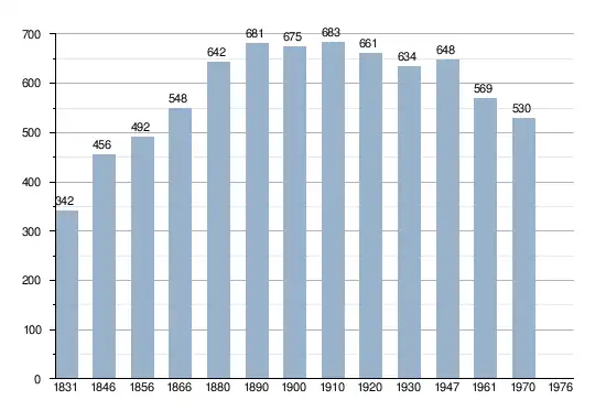 - Sources:INS, Rem:1831 jusqu'en 1970=recensements, 1976= nombre d'habitants au 31 décembre