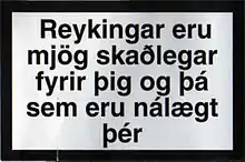 • « Reykingar eru mjög skaðlegar fyrir þig og þá sem eru nálægt þér » Fumer est très nocif pour toi et pour ton entourage »)