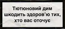 • « Тютюновый дим шкодить здоров'ю тих, хто вас оточує » La fumée du tabac nuit à la santé de votre entourage »)