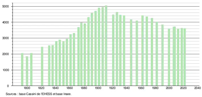 - Population municipale légale en vigueur au 1er janvier 2024, millésimée 2021, définie dans les limites territoriales en vigueur au 1er janvier 2023, date de référence statistique : 1er janvier 2021.