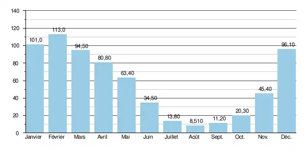 Ainsi à l'étiage, le VCN3 peut chuter jusque 1,6 m3/s, en cas de période quinquennale sèche, soit 1 600 litres par seconde, ce qui devient sévère, mais reste dans la norme des cours d'eau de la région.