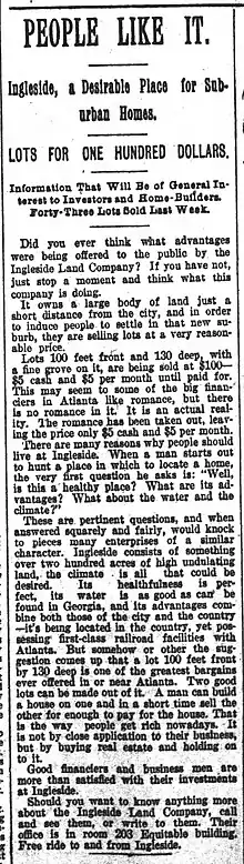 Dans les années 1890, les parcelles de terrain de la localité (alors appelée Ingleside) sont mises en vente.