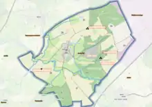 L'occupation des sols de la commune, telle qu'elle ressort de la base de données européenne d’occupation biophysique des sols Corine Land Cover (CLC), est marquée par l'importance des territoires agricoles (63,8 % en 2018), une proportion identique à celle de 1990 (63,8 %). La répartition détaillée en 2018 est la suivante : terres arables (40,6 %), forêts (20,8 %), prairies (14,8 %), zones agricoles hétérogènes (8,4 %), zones industrielles ou commerciales et réseaux de communication (6,4 %), milieux à végétation arbustive et/ou herbacée (6,3 %), mines, décharges et chantiers (2,7 %)[16]. L'évolution de l’occupation des sols de la commune et de ses infrastructures peut être observée sur les différentes représentations cartographiques du territoire : la carte de Cassini (XVIIIe siècle), la carte d'état-major (1820-1866) et les cartes ou photos aériennes de l'IGN pour la période actuelle (1950 à aujourd'hui)[Carte 1].