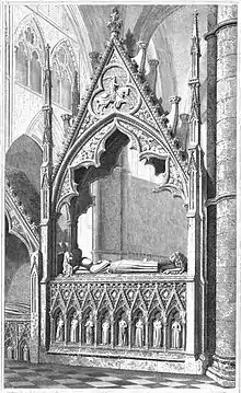 Dessin du gisant d'Aymar de Valence par Charles Alfred Stothard, 1811. | ||
