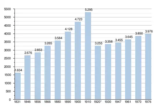 - Source: DGS , de 1831 à 1981=recensements population; à partir de 1990 = nombre d'habitants chaque 1 janvier