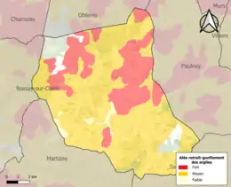 Le retrait-gonflement des sols argileux est susceptible d'engendrer des dommages importants aux bâtiments en cas d’alternance de périodes de sécheresse et de pluie. 91,6 % de la superficie communale est en aléa moyen ou fort (84,7 % au niveau départemental et 48,5 % au niveau national). Sur les 651 bâtiments dénombrés sur la commune en 2019, 625 sont en aléa moyen ou fort, soit 96 %, à comparer aux 86 % au niveau départemental et 54 % au niveau national. Une cartographie de l'exposition du territoire national au retrait gonflement des sols argileux est disponible sur le site du BRGM[23],[24].