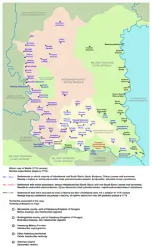 Au cours du XVIIIe siècle, les Habsbourg soutinrent une intense politique de colonisation dans le secteur, notamment en raison du faible peuplement de la région après les dernières guerres contre les Ottomans. Les nouveaux arrivants furent d'abord des Serbes, des Magyars et des populations germaniques. Comme beaucoup de ces Allemands venaient de Souabe, ils étaient connus sous le nom de Souabes du Danube (Donauschwaben) ; d'autres populations germaniques vinrent aussi d'Autriche, de Bavière et d'Alsace. Des Slovaques luthériens, des Ruthènes pannoniens et d'autres peuples participèrent aussi à la colonisation mais dans une moindre mesure.