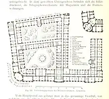 Après la création de la Direction Générale en 1871, son siège était sur le Quai Kléber, à proximité immédiate de l'ancienne gare de Strasbourg. Sa situation exiguë y est résolue à l'occasion de la construction de la nouvelle gare de Strasbourg-Ville de 1878 à 1883 : la direction générale reçoit un nouveau bâtiment sur le parvis de la gare, également conçu avec sa construction[1]. L'architecte était Johann Eduard Jacobsthal tant pour le bâtiment d'accueil de la gare centrale que pour le bâtiment administratif[2] Cependant, l'adresse postale de la direction était le Kronenburger Ring (aujourd'hui : Boulevard du Président-Wilson). Les travaux du nouveau bâtiment du siège durèrent de 1881 à 1884. A cette époque est édifié le corps de logis principal, la partie sud, qui se groupe autour de deux cours fermées.[1] Une autre aile est ajoutée au nord vers 1893, groupée autour d'une cour ouverte à l'ouest. Cette extension avait déjà été créée en option pour le bâtiment d'origine[3]. Plus tard, cette cour ouverte a également été fermée avec un autre bâtiment.