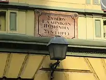 Plaque commémorative sur la façade (en grec)
