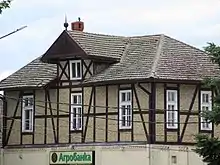En forme de « L », le bâtiment est constitué d'un sous-sol situé sous la partie sud ouest du bâtiment, d'un rez-de-chaussée, d'un étage et d'un grenier[2]. Ses fondations sont en pierres ; le sous-sol et le rez-de-chaussée sont en briques reliées par du mortier ; l'étage, quant à lui, est conçu selon la technique des colombages en bois avec un remplissage en briques apparentes[2]. Le grenier et le toit sont en bois ; le toit, de structure complexe, est recouvert de tuiles[2].