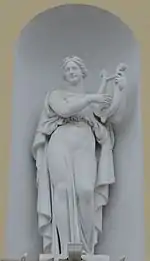 La façade est bordée par une frise garnie de sculptures, de masques de couronnes de lauriers. Dans les niches de la façade avant sont disposées des statues de muses, et devant l'attique un quadrige conduit par Apollon. Les sculptures sont dues à un sculpteur remarquable de l'époque Vassili Demuth-Malinovski.