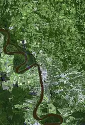 Certains quartiers de la ville situés à l'ouest sont construits sur ces escarpements qui dominent la plaine alluviale du fleuve Mississippi, dont les sols riches et fertiles ont favorisé l'occupation humaine.