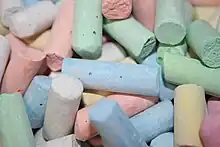 Les bâtons de craie peuvent également être utilisés sur d'autres surfaces, notamment à même le sol, par exemple pour dessiner une marelle. Il en existe en plusieurs couleurs, la principale et la plus basique étant le blanc.