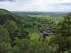 Le nord du pays est principalement constitué de savanes et de montagnes semi-arides, telles que la chaîne de l'Atacora, qui se prolonge au Togo et au Ghana d'une part et au Niger d'autre part[9]. Le point culminant du pays est le mont Sokbaro (ou Sagbarao) (800 mètres).