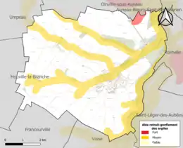 Le retrait-gonflement des sols argileux est susceptible d'engendrer des dommages importants aux bâtiments en cas d’alternance de périodes de sécheresse et de pluie. 27,5 % de la superficie communale est en aléa moyen ou fort (52,8 % au niveau départemental et 48,5 % au niveau national). Sur les 666 bâtiments dénombrés sur la commune en 2019, 203 sont en aléa moyen ou fort, soit 30 %, à comparer aux 70 % au niveau départemental et 54 % au niveau national. Une cartographie de l'exposition du territoire national au retrait gonflement des sols argileux est disponible sur le site du BRGM[18],[Carte 2].