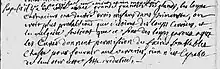 « L'an 1747 et le 23e may, mardi de pentecôte pendant l'office de vêpres, un loup carnacier prit l'enfant de François Malarin à la porte de sa maison, en présence de sa mère qui ne put jamais le lui arracher des dents : plusieurs personnes revenant de vêpres ayant entendu le récit de ce malheur coururent dans les bois, sur les traces du sang que répandoit led[it] enfant, dont ils trouvèrent quelques membres dispersés, comme la tête, les bras, une cuisse et un pied, qui furent ensevelis le meme jour dans le cimetiere de Primarette à nuit tombante, en présence de Michel et Gabriel Perrochat, père et fils, Antoine Jeury, Jean Bassat, Claude Berthier, et plusieurs autres personnes qui avoient accouru à ce triste spectacle. Led[it] enfant * âgé de sept ans et un mois environ et est fils légitime de François Malarin, dit l'Espagnoux, et Fleurice Petit. Ainsi est, en foi de quoy j'ay signé, non les susd[its] témoins pour ne savoir écrire. Favre Curé.