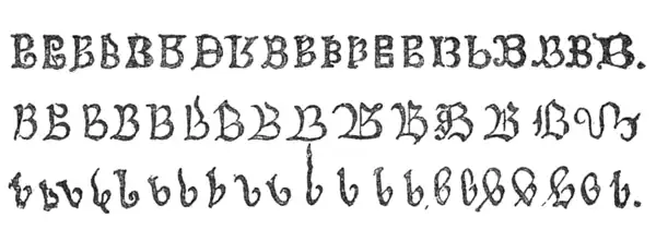 La graphie de la lettre b minuscule moderne provient de la fin de l'Empire romain, lorsque les scribes commencèrent à omettre la boucle supérieure de la lettre.