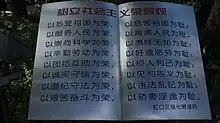 Les Huit Honneurs et Huit Hontes (chinois simplifié : 八荣八耻 ; chinois traditionnel : 八榮八恥 ; pinyin : bā róng bā chĭ) également connu sous le nom des Huit honneurs et disgrâces, est un ensemble de concepts moraux développés par l'ancien secrétaire général du parti Communiste chinois Hu Jintao pour les citoyens de la République populaire de Chine. Il est également connu sous le nom de Huit vertus et hontes, ou du programme en huit étapes de Hu Jintao. Son nom officiel en Chine est Concepts socialistes sur les honneurs et les disgrâces (chinois simplifié : 社会主义荣辱观 ; chinois traditionnel : 社會主義榮辱觀 ; pinyin : shè huì zhŭ yì róng rŭ guān).