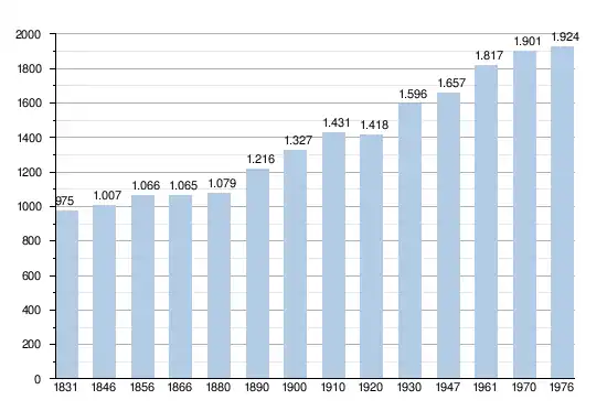 - Sources : INS, Rem. : 1831 jusqu'en 1970 = recensements, 1976 = nombre d'habitants au 31 décembre[2].
