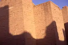 Les meilleures sources d'information sur les constructions de la ville sont les inscriptions de fondation et les « noms d'années » des rois paléo-babyloniens commémorant leurs travaux de construction[29]. Le premier roi de la dynastie, Sumu-la-El, a construit un nouveau mur d'enceinte pour la ville et le palais royal, que ses successeurs occuperont après lui. Ammi-ditana semble en avoir construit un autre, à moins qu'il ne s'agisse d'une restauration (les textes ne distinguant pas forcément les deux). On n'a un aperçu de la vie au palais royal de Babylone que par quelques tablettes du temps de Hammurabi, provenant de la correspondance diplomatique du roi de Mari évoquant avant tout des tractations intéressant ce dernier[30]. Les rois paléo-babyloniens entreprennent régulièrement des chantiers dans leur capitale, qui concernent avant tout ses murailles, ses portes et surtout ses nombreux temples. Ils rapportent également les offrandes somptueuses qu'ils font à certaines divinités de la ville. L'Esagil, le temple du grand dieu local Marduk, fait en particulier l'objet de leurs attentions. Sa ziggurat n'est pas mentionnée, mais les relevés archéologiques semblent dater sa phase la plus ancienne dans cette période. Les textes du Merkes indiquent pour leur part que le quartier situé en ce lieu était nommé « Ville neuve orientale », il était notamment habité par une catégorie de prêtresses appelées nadītum, caractéristiques de l'époque paléo-babylonienne[31].