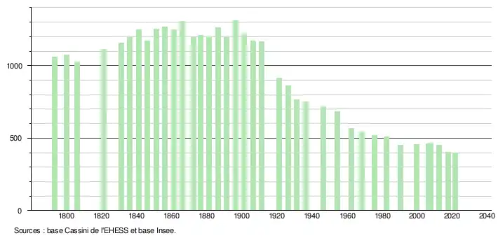 - Fiches Insee - Populations légales de la commune pour les années 2006, 2007, 2008, 2009, 2010, 2011, 2012, 2013, 2014, 2015, 2016, 2017, 2018, 2019, 2020 et 2021.