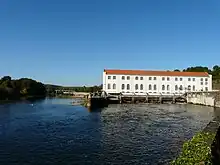 La Dordogne en aval de la centrale hydroélectrique de Mauzac, avec vue sur la commune de Mauzac-et-Grand-Castang en face.