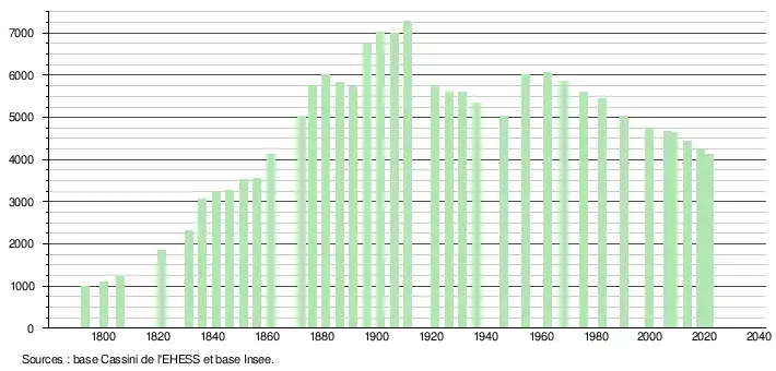 - Population municipale légale en vigueur au 1er janvier 2024, millésimée 2021, définie dans les limites territoriales en vigueur au 1er janvier 2023, date de référence statistique : 1er janvier 2021.