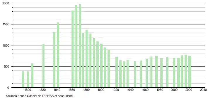 - Fiches Insee - Populations légales de la commune pour les années 2006, 2007, 2008, 2009, 2010, 2011, 2012, 2013, 2014, 2015, 2016, 2017, 2018, 2019, 2020 et 2021.