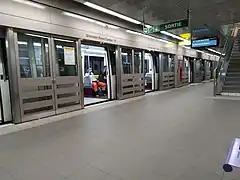 Elle est également équipée de quais latéraux à huit portes lui permettant de recevoir des rames de 26 m à deux voitures.
