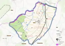 L'occupation des sols de la commune, telle qu'elle ressort de la base de données européenne d’occupation biophysique des sols Corine Land Cover (CLC), est marquée par l'importance des territoires agricoles (79 % en 2018), une proportion identique à celle de 1990 (79 %). La répartition détaillée en 2018 est la suivante : terres arables (47,4 %), prairies (31,6 %), forêts (17,6 %), zones urbanisées (3,4 %)[17]. L'évolution de l’occupation des sols de la commune et de ses infrastructures peut être observée sur les différentes représentations cartographiques du territoire : la carte de Cassini (XVIIIe siècle), la carte d'état-major (1820-1866) et les cartes ou photos aériennes de l'IGN pour la période actuelle (1950 à aujourd'hui)[Carte 1].