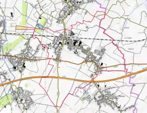 L'occupation des sols de la commune, telle qu'elle ressort de la base de données européenne d’occupation biophysique des sols Corine Land Cover (CLC), est marquée par l'importance des territoires agricoles (74,8 % en 2018), néanmoins en diminution par rapport à 1990 (78,8 %). La répartition détaillée en 2018 est la suivante : terres arables (69 %), zones urbanisées (20,3 %), prairies (4,9 %), zones industrielles ou commerciales et réseaux de communication (3,6 %), zones agricoles hétérogènes (0,9 %), espaces verts artificialisés, non agricoles (0,7 %), forêts (0,7 %)[15]. L'évolution de l’occupation des sols de la commune et de ses infrastructures peut être observée sur les différentes représentations cartographiques du territoire : la carte de Cassini (XVIIIe siècle), la carte d'état-major (1820-1866) et les cartes ou photos aériennes de l'IGN pour la période actuelle (1950 à aujourd'hui)[Carte 1].
