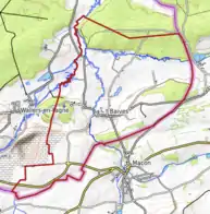 L'occupation des sols de la commune, telle qu'elle ressort de la base de données européenne d’occupation biophysique des sols Corine Land Cover (CLC), est marquée par l'importance des territoires agricoles (68,9 % en 2018), néanmoins en diminution par rapport à 1990 (71,2 %). La répartition détaillée en 2018 est la suivante : prairies (55,6 %), forêts (24 %), terres arables (13,3 %), zones urbanisées (3,1 %), mines, décharges et chantiers (2,2 %), zones humides intérieures (1,7 %)[6]. L'évolution de l’occupation des sols de la commune et de ses infrastructures peut être observée sur les différentes représentations cartographiques du territoire : la carte de Cassini (XVIIIe siècle), la carte d'état-major (1820-1866) et les cartes ou photos aériennes de l'IGN pour la période actuelle (1950 à aujourd'hui)[Carte 1].