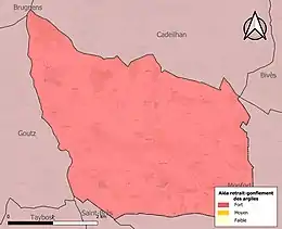 Le retrait-gonflement des sols argileux est susceptible d'engendrer des dommages importants aux bâtiments en cas d’alternance de périodes de sécheresse et de pluie. La totalité de la commune est en aléa moyen ou fort (94,5 % au niveau départemental et 48,5 % au niveau national). Sur les 56 bâtiments dénombrés sur la commune en 2019, 56 sont en aléa moyen ou fort, soit 100 %, à comparer aux 93 % au niveau départemental et 54 % au niveau national. Une cartographie de l'exposition du territoire national au retrait gonflement des sols argileux est disponible sur le site du BRGM[20],[Carte 3].