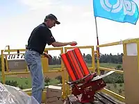 L’envoi du ou des plateaux peut être déclenché soit manuellement ou par un dispositif de déclenchement à la voix qui doit posséder le même retard à l’envoi qu’un système manuel, fil et bouton poussoir[13].