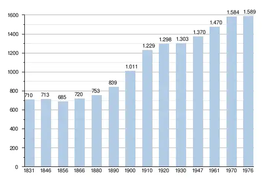 - Sources : INS, Rem. : 1831 jusqu'en 1970 = recensements, 1976 = nombre d'habitants au 31 décembre[2].