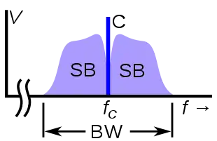 La modulation d'amplitude d'un signal porteur produit normalement deux bandes latérales en miroir. Les composantes du signal situées au-dessus de la fréquence de la porteuse constituent la bande latérale supérieure (USB) et celles situées au-dessous de la fréquence de la porteuse constituent la bande latérale inférieure (LSB). Par exemple, si une porteuse de 900 kHz est modulée en amplitude par un signal audio de 1 kHz, il y aura des composantes à 899 kHz et 901 kHz ainsi qu'à 900 kHz dans le spectre radiofréquence généré ; Ainsi, une largeur de bande audio de (disons) 7 kHz nécessitera une largeur de bande du spectre radioélectrique de 14 kHz. Dans la transmission AM conventionnelle, telle qu'elle est utilisée par les stations AM de la bande de radiodiffusion, le signal audio d'origine peut être récupéré ("détecté") par des circuits de détection synchrones ou par de simples détecteurs d'enveloppe, car la porteuse et les deux bandes latérales sont présentes. On parle parfois de modulation d'amplitude à double bande latérale (DSB-AM), mais toutes les variantes de DSB ne sont pas compatibles avec les détecteurs d'enveloppe.