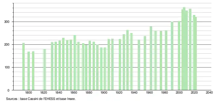 - Fiches Insee - Populations légales de la commune pour les années 2006, 2007, 2008, 2009, 2010, 2011, 2012, 2013, 2014, 2015, 2016, 2017, 2018, 2019, 2020 et 2021.