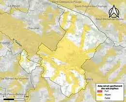 Le retrait-gonflement des sols argileux est susceptible d'engendrer des dommages importants aux bâtiments en cas d’alternance de périodes de sécheresse et de pluie. 50,6 % de la superficie communale est en aléa moyen ou fort (33,6 % au niveau départemental et 48,5 % au niveau national). Sur les 134 bâtiments dénombrés sur la commune en 2019, 62 sont en aléa moyen ou fort, soit 46 %, à comparer aux 25 % au niveau départemental et 54 % au niveau national. Une cartographie de l'exposition du territoire national au retrait gonflement des sols argileux est disponible sur le site du BRGM[17],[Carte 2].