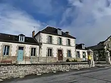 - La chapelle mortuaire de la place de Banize[31] : cette chapelle est celle de la famille Georges de Rebéry, hameau de Banize. Si comme en témoigne encore une petite tombe dans le fond de la place, à l'origine le cimetière entourait l'église jusqu'en 1905, comme cela était de mise partout en France jusqu'à une disposition de la fin du XVIIIe siècle qui les fit éloigner des centres-bourgs pour des raisons d'hygiène ; le terrain où est élevée cette chapelle appartenait quant à lui à ladite famille, laquelle a voulu l'édifice regardant leur propriété. Elle fit par la suite don de la parcelle, assorti d'une soulte en or à la commune de Banize, moyennant que la municipalité s'engage à créer une place arborée et à entretenir leur dernière demeure pour leur postérité.[réf. nécessaire]