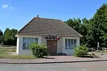 - La nouvelle église a été construite à 1 km de l'ancienne. Elle se trouve avec la mairie, également reconstruite, isolée en pleine campagne.