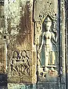 La "Salle de Danse" était, à l'origine, un bâtiment couvert à toit soutenu par des colonnes ornées d'apsaras, – les danseuses célestes qui divertissent les dieux – et de divinités secondaires les Devatas.